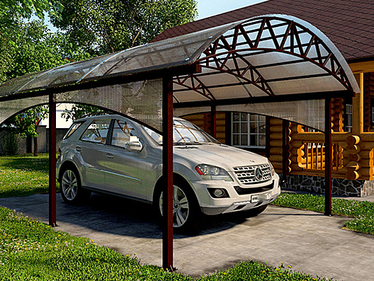 Благодаря полупрозрачной поликарбонатной крыше и изящному каркасу из профилей навес эстетичен и надежен. Весь уход ограничивается помывкой мягкой губкой или тряпкой, смоченной в чистой воде. Мы производим конструкции разных размеров — от небольших козырьков над крыльцом площадью в пару кв. метров до крытых парковок на несколько автомобилей.