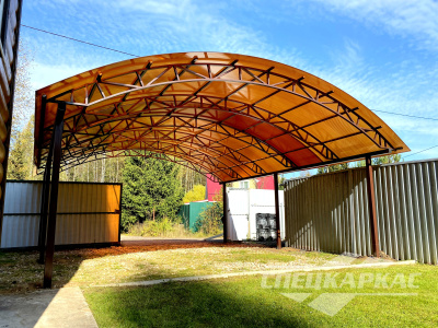 Это легкое, прочное сооружение от «Спецкаркаса» станет настоящим центом притяжения на вашей территории. Предлагаем купить навес из поликарбоната у компании «Спецкаркас» — срок монтажа под ключ составит 1-2 дня!