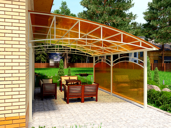 Навес над террасой частного дома поликарбонат 8 мм №21